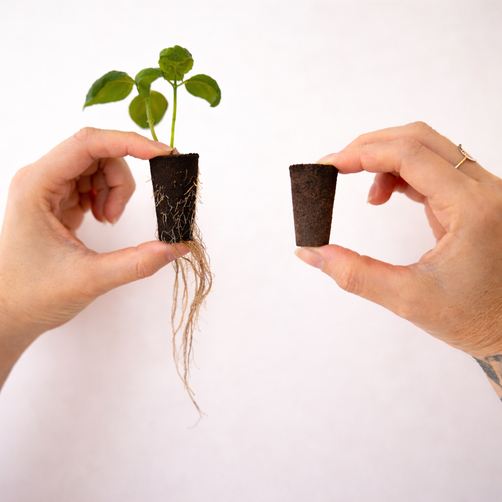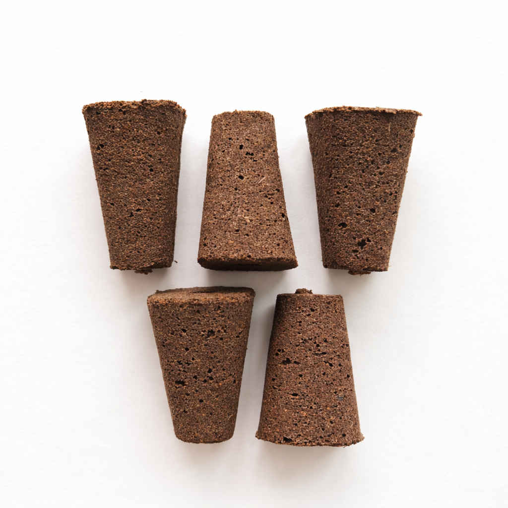 Hydroponiske tørv-svampe (vækstsvampe) er, først og fremmest komposterbare. De er lavet af naturlig tørv og designet til spiring og rodudvikling i vores hydroponiske urtepotte.